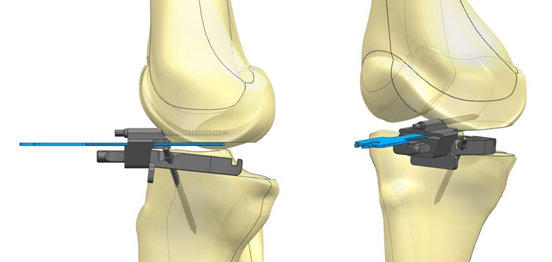 截骨定位器前缘应小于股骨远端截骨面前缘;截骨定位器垂直于胫骨截骨面;股骨截骨定位器参考胫骨平台中线,略偏外。