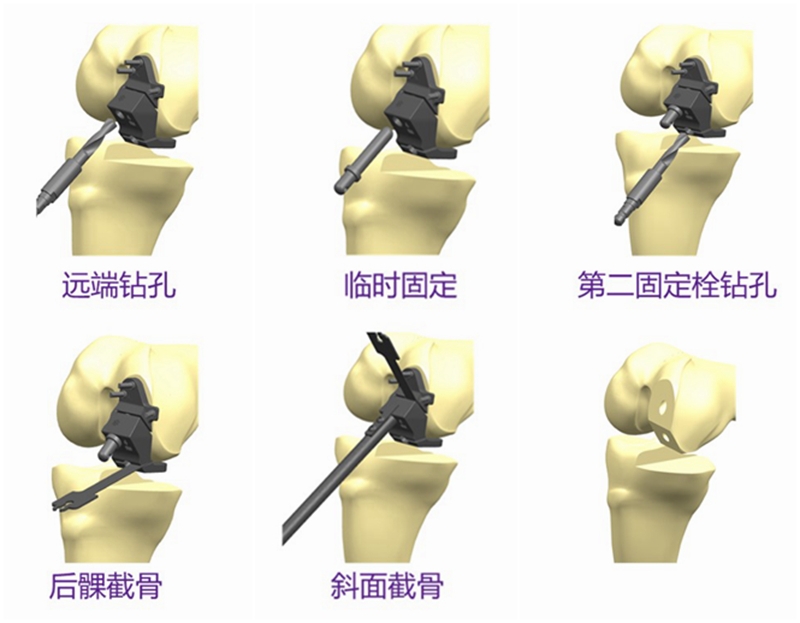 ③根据固定平台单髁假体的设计特点,选择合适的股骨截骨方式;