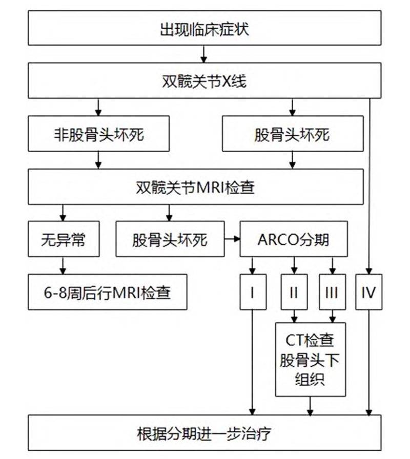 图7. 股骨头坏死诊断流程(引自股骨头坏死中西医结合诊疗专家共识(2023))