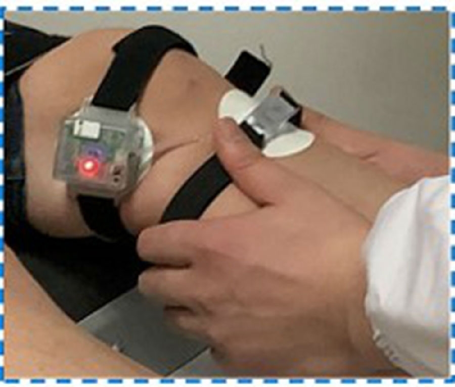 中南大学湘雅医院骨科李宇晟教授团队[3]提出了一种基于光栅结构摩擦电拉伸传感器的可穿戴位移传感系统(图3),用于诊断前交叉韧带损伤。拉伸传感器具有高分辨率(0.2mm)和出色的坚固性(超过1000000次连续操作周期)。该系统在临床试验中用于诊断前交叉韧带损伤。它在拉赫曼试验期间测量受影响腿和健康腿之间的位移差。当这种差异大于 3 毫米时,前交叉韧带被认为有受伤或撕裂的风险。与关节镜的金标准相比,该可穿戴诊断系统的一致性率达到85.7%左右,高于体积较大的Kneelax3关节镜(78.6%)。这表明可穿戴系统具有补充和改进现有关节测量仪以方便诊断ACL损伤的可行性。对于可穿戴医疗保健来说,这可能是有希望的一步。