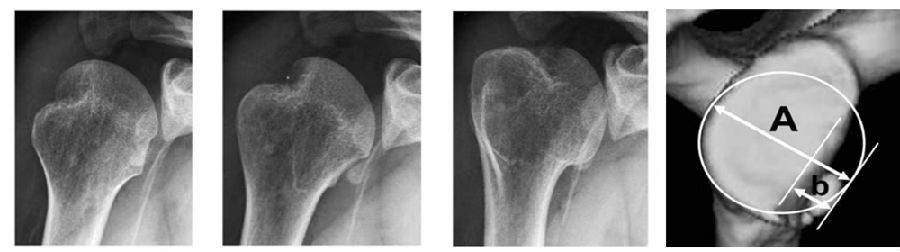3. 肩胛盂骨缺损大于或者等于肩胛盂直径的25%,那么无论Hill-Sachs损伤的范围多大,都应该进行植骨手术。