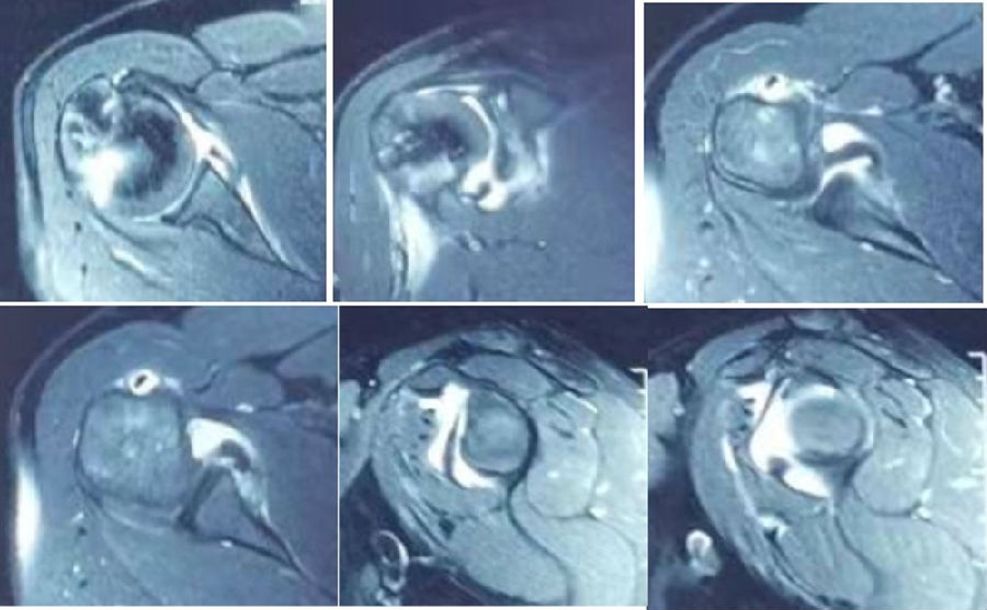 文献报道,伴有Hill-Sachs损伤概率达93%。肱骨头骨缺损(Hill-sachs损伤)的发生率占肩关节前向不稳病例的65%-93%。目前,肱骨头显著性骨缺损的评定标准尚无统一定论。Di Giacomo等将Hill-sachs损伤分为“On-track”和“Off-track”。