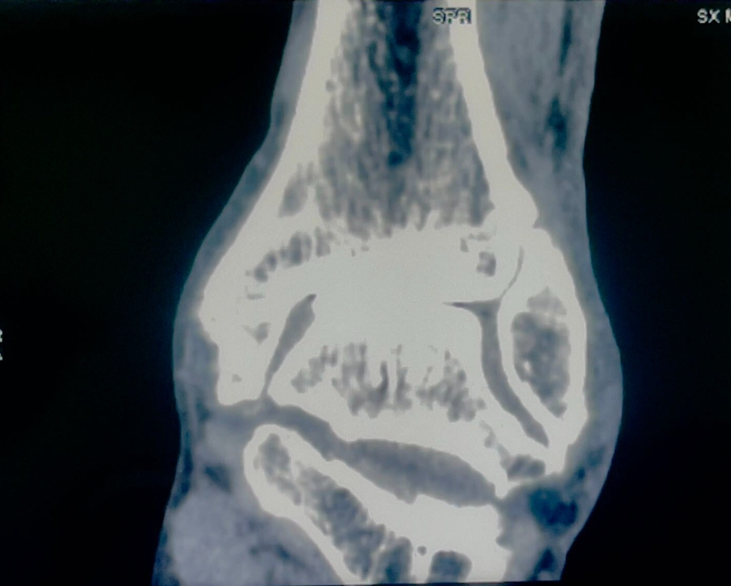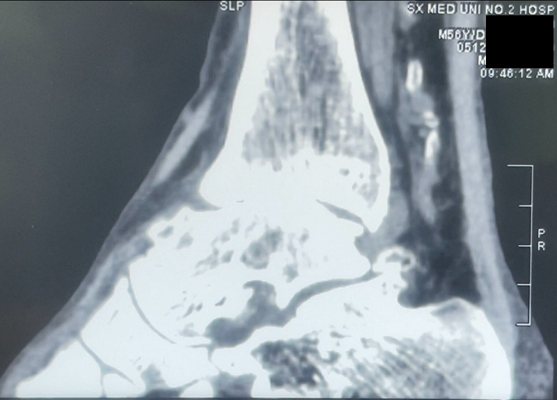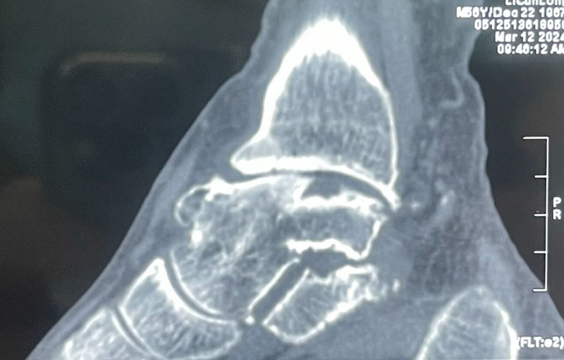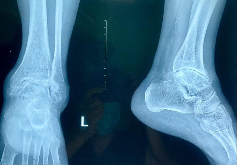 病例报告之二,xx,男,56岁,左踝创伤性关节炎。左踝崴伤6年,疼痛加剧3年。切口显露同前。