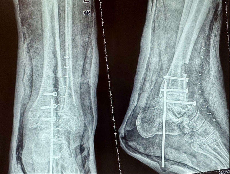 3. 功能位石膏8、12周。或螺丝钉固定胫距、距跟关节。