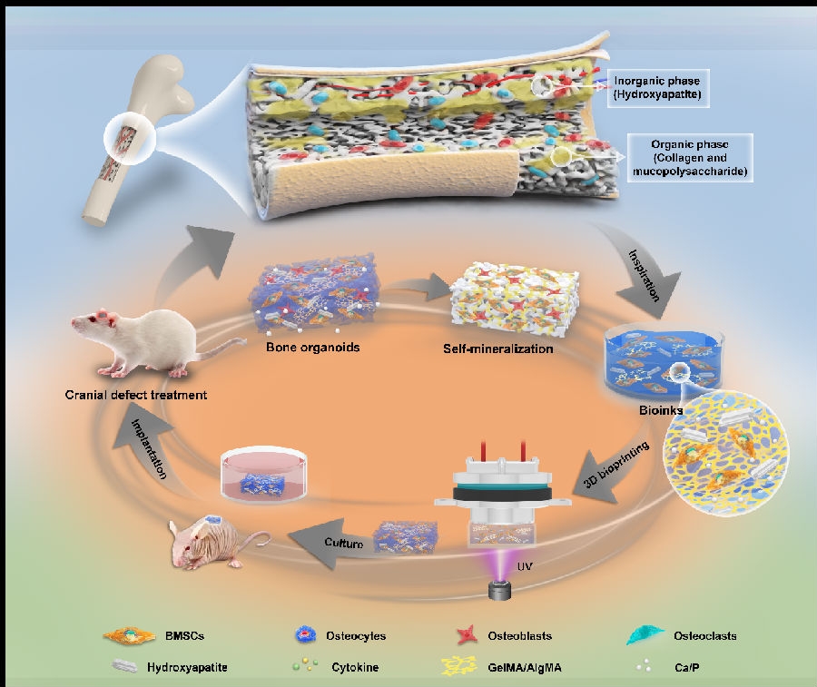 Wang J, Wu Y, Li G, Zhou F, Wu X, Wang M, Liu X, Tang H, Bai L, Geng Z, Song P, Shi Z, Ren X, Su J. Engineering Large-Scale Self-Mineralizing Bone Organoids with Bone Matrix-Inspired Hydroxyapatite Hybrid Bioinks. Adv Mater. 2024 Apr 20:e2309875. doi: 10.1002/adma.202309875. Epub ahead of print. PMID: 38642033.
