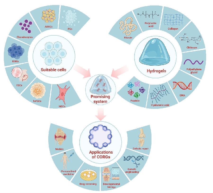 软骨修复和再生一直是医学研究热门话题。软骨类器官是使用体外组织工程技术构建的特殊软骨组织。这些工程类器官组织提供了模拟软骨复杂生物学功能模型,为软骨再生医学和治疗策略开辟了新可能。建立合适基质支架来培养软骨软骨类器官至关重要。近年来,利用水凝胶培养干细胞并诱导其分化为软骨细胞成为体外构建软骨类器官重要方法。