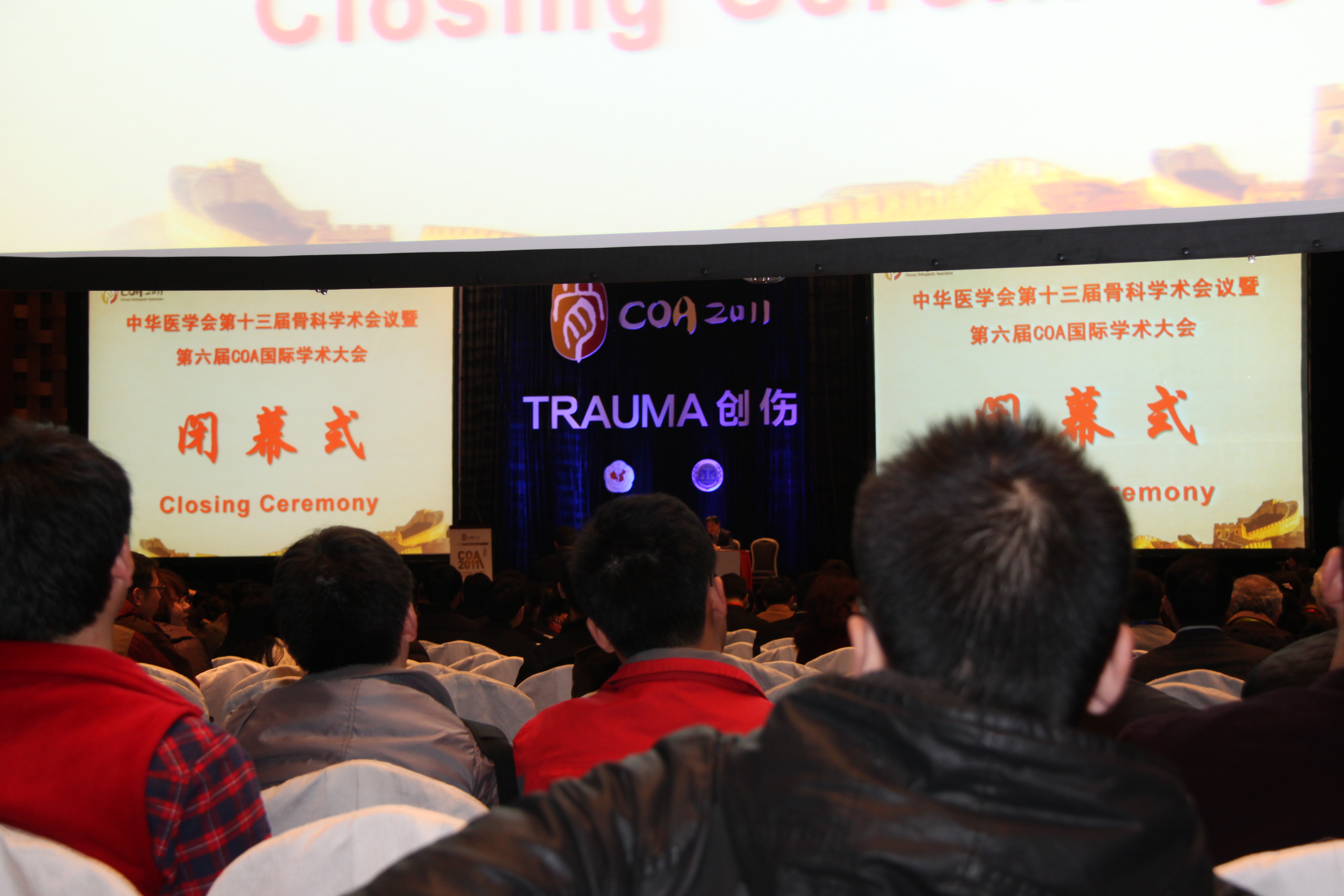 相信今年COA的开幕式给所有与会代表留下了深刻的印象,从嘉宾走红毯入场到庄严的升国旗仪式,从融贯古今中外的骨科学发展历程展示到为历届主任委员颁发特别贡献奖,特别是大会主席王岩教授慷慨激昂,热情洋溢的开幕致辞,无不体现了大会组委会对国内外嘉宾和老前辈的尊重,对大会组织工作的高度重视。另外,大会另一创新是用电子壁报替换了往届的展板张贴,使会议更加环保、交流更加便捷。此次会议期间,中华医学会、解放军总医院和北京市13家医院共300多名工作人员参与了会议服务,正是他们辛勤的付出才使本届大会取得了空前的成功。在此,我们也向所有这些为大会成功举办付出辛勤劳动的会务人员致以衷心的感谢!