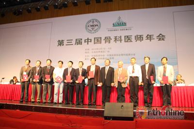 5月8日-9日由大连医学会、中国医师协会骨科医师分会共同主办,大连医科大学附属中山医院承办的第三届骨科医师年会暨第七届全国股骨头缺血性坏死修复与再造培训班在大连召开。大会开幕式由中国医师协会骨科医师分会副会长赵德伟教授主持,开幕式上宣布了中国医师协会骨科医师分会第二届常委会的选举结果,并颁发证书。会议开辟了关节、脊柱、创伤等分会场,并邀请包括台湾在内的全国多位知名专家就当前相关领域的热点难点问题做了专题报告,一千多位骨科医师到会。