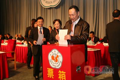 下午,中华医学会在国际会议中心举行全体代表会议和第24届理事会全体理事第一次会议,会议根据《中华医学会章程》,审议并通过了《中华医学会第24届理事会理事选举办法》和《中华医学会第24届理事会常务理事、会长、副会长、秘书长选举办法》,选举产生了第24届理事251名,常务理事55名,会长:陈竺,副会长:吴明江 祁国明 戴建平 顾玉东 刘俊 郝希山 李兰娟 魏于全 张雁灵 贺福初 刘德培 赵玉沛 柯杨 杨宝峰 买买提·牙森 刘雁飞,秘书长刘雁飞(兼)。