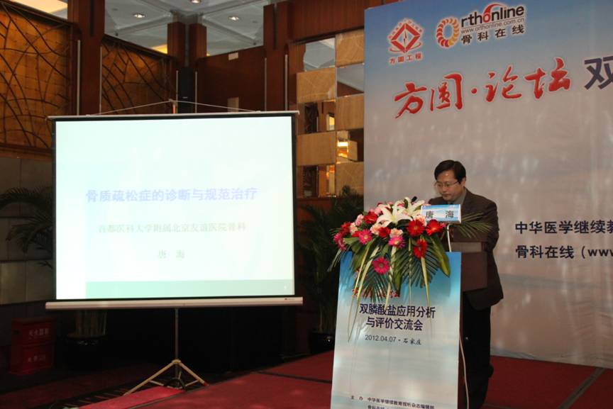 由中华医学继续教育视听杂志编辑部和骨科在线(http://www.orthonline.com.cn)主办的“方圆论坛——双膦酸盐应用分析与评价交流会石家庄站会议”,于2012年4月7日下午在河北省石家庄市召开。本次会议是2012年方圆论坛——双膦酸盐应用分析与评价交流会的第2站。
