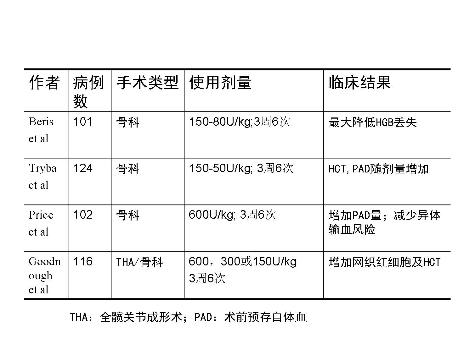 围手术期血液管理的药物干预策略包括两方面,一是增加红细胞储备,包括治疗贫血原发病,EPO,铁剂的使用;二是减少出血,包括相关止血药物的使用;有关EPO在骨科手术中的使用文献报道相当多(图1),使用策略已在前文描叙。