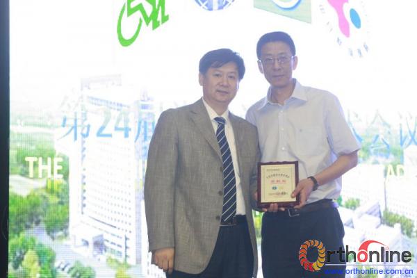 李建军院长向孙天胜院长颁发中国脊髓损伤康复事业贡献奖