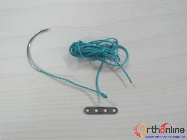 图1 下胫腓关节固定肌腱缝合线及金属指骨接骨板