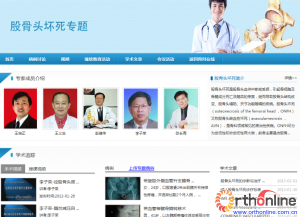 由于股骨头坏死的诊疗长期困扰一些临床骨科医生,特别是年轻的骨科医生,为此,骨科在线特邀国内知名的股骨头坏死专家在本网站上交流和分享股骨头坏死治疗的最新研究成果,新经验、新技术及随访和疗效评价等,本网站希望通过专题讲座、学术报告和病例讨论等方式交流临床治疗股骨头坏死的经验,并欢迎大家参与讨论和互动。