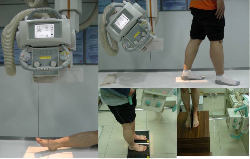 放射学检查:拍摄足负重正侧位 ,45°内斜位,跟骨轴位X线片。