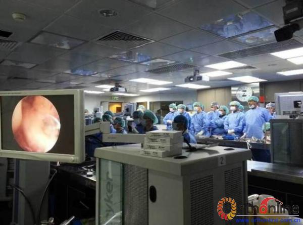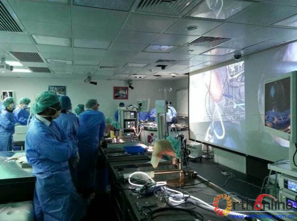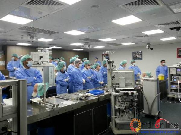 上海华山医院陈世益教授在香港中文大学威尔士亲王医院指导骨科学员进行关节镜手术技术操作