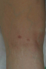 患者,女, 53岁。因“发现左膝肿块2月”入院。体检示左膝腘窝内侧可及4cm*4cm质韧肿块,压痛(-),活动度良好。左膝内侧关节间隙压痛(+),麦氏征(+)。MRI示“左膝腘窝囊肿,左膝内侧半月板损伤”。经完善术前准备后行关节镜治疗术。术中先采用后侧入路,行关节镜下囊肿切除,然后行常规关节镜检查,处理关节腔内半月板损伤,同时经后内侧入路打开腘窝囊肿与关节腔通路。