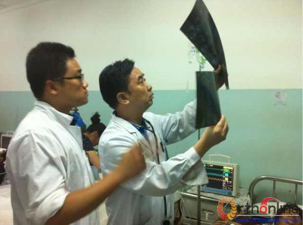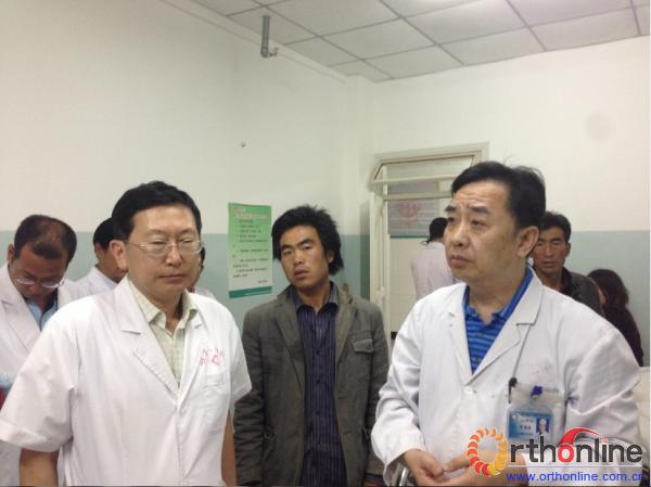 2013年7月22日上午10时左右,中日友好医院创伤骨科林朋主任突然接到医务处通知,需紧急组织医疗急救队奔赴甘肃定西地震灾区支援抗震救灾工作。经紧急人员调动,由创伤骨科林朋主任、杨欢医师及ICU一名医生经一小时左右紧急准备后奔赴机场,在卫计委应急办领导陈雷同志的陪同下于下午4:10起飞,傍晚6:20降落于兰州中川机场,接洽领导为甘肃卫生厅王小明副厅长。随后在卫计委领导的关心和安排下,中日友好医院医疗救助队乘专车行驶约5小时于2013年7月23日凌晨1点直接到达岷县人民医院,到达后立即投入当地危重伤员的救治中。伤员多数为多发骨折、多发创伤伤员,其中极危重伤员亦不少,经临床仔细查体、阅片后,林朋主任等专家与甘肃省卫生厅刘维忠厅长、岷县人民医院院长及主管医生交流并作出诊断及治疗方案后结束工作,于凌晨2点半赶往驻地休息。